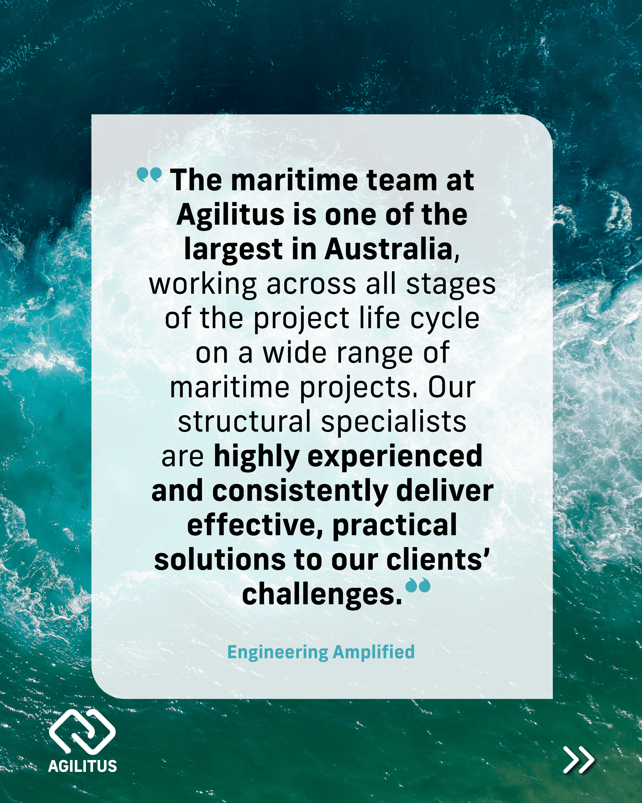“The maritime team at Agilitus is one of the largest in Australia, working across all stages of the project life cycle on a wide range of maritime projects. Our structural specialists are highly experienced and consistently deliver effective, practical solutions to our clients’ challenges.”